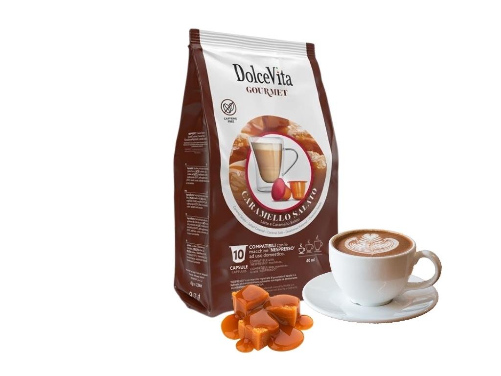Dolce Vita karamel jsou kapsle kompatibilní s Nespresso kávovary a potěší každého milovníka jemné kávy se sladkým karamelovým nádechem. Spojení kvalitní instantní kávy, mléka a karamelové příchutě tvoří vyvážený nápoj s krémovou texturou a příjemně nasládlou chutí. Tyto kapsle jsou ideální alternativou ke klasické kávě, když máte chuť na něco speciálního. Díky své jedoduché přípravě si svůj šálek karamelového potěšení vychutnáte za pár vteřin - doma, v práci i na cestách. Značka Dolce Vita pochází z Itálie a je známá svými originálními kávovými nápoji v kapslích. Všechny jejich kapsle jsou vyrobeny s důrazem na kvalitu.
